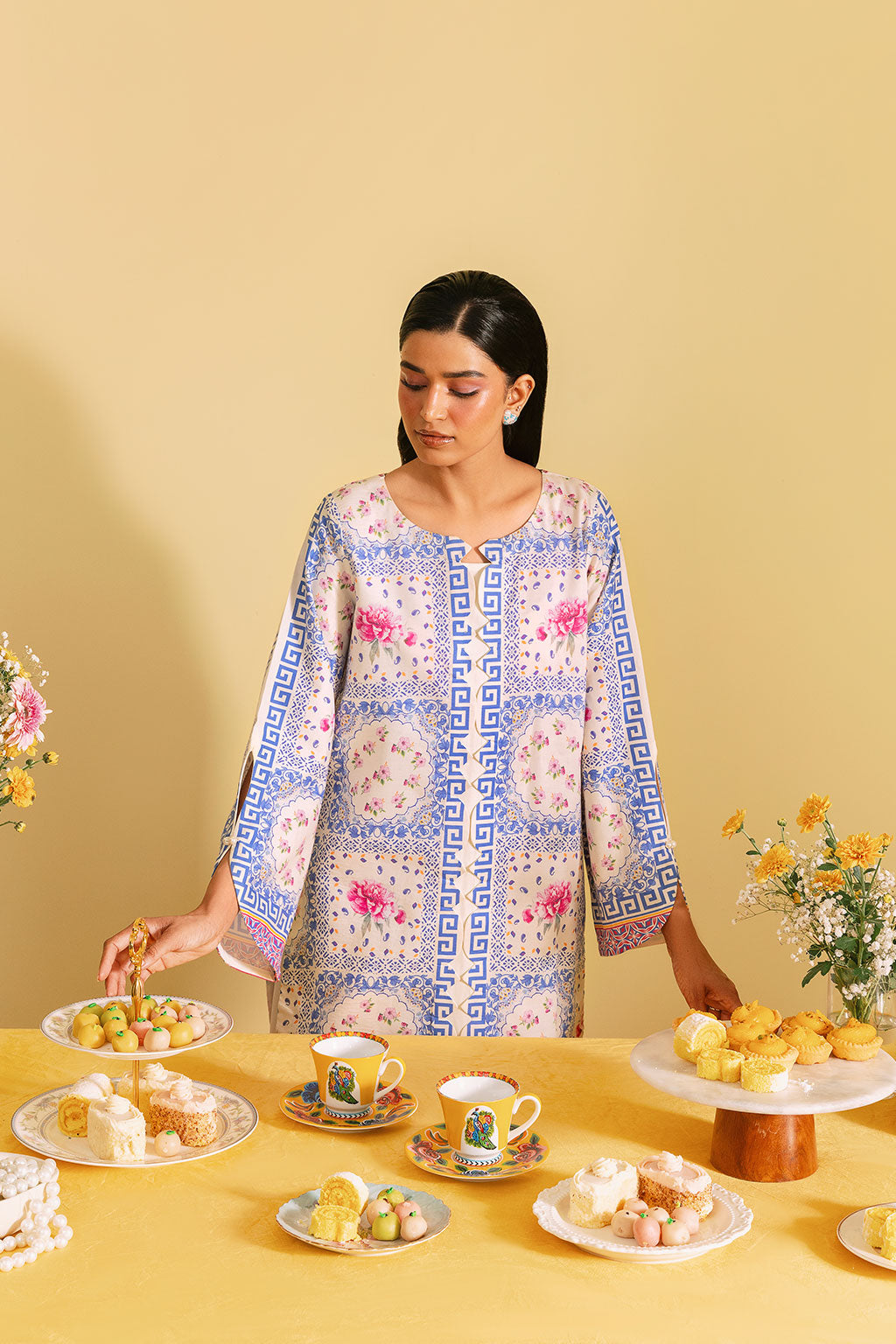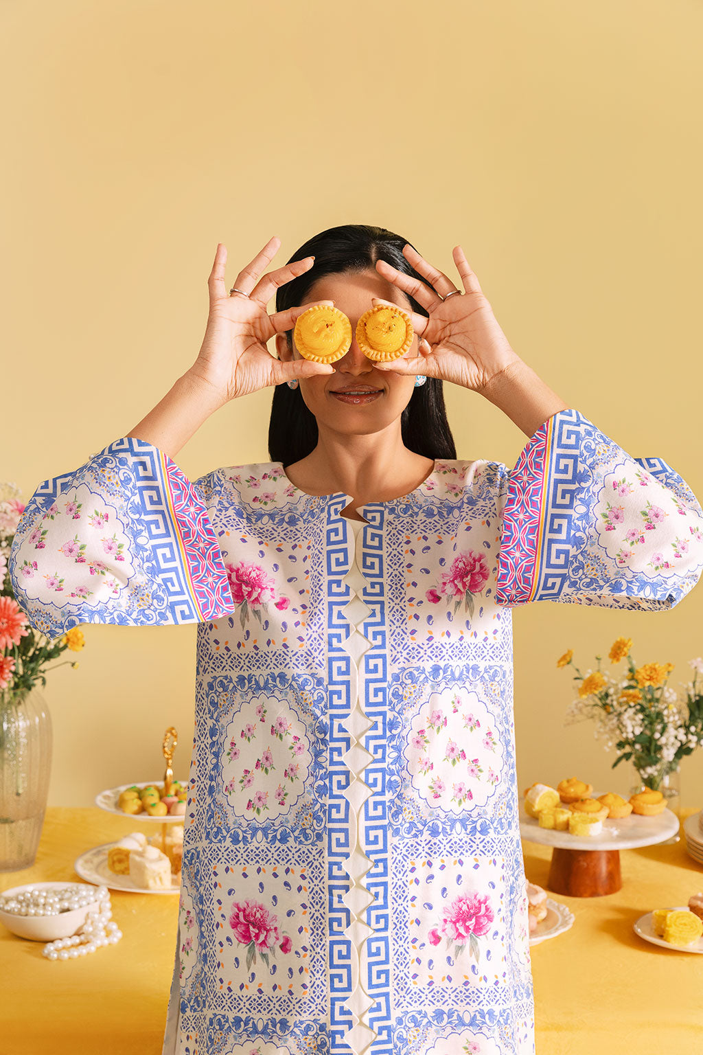 A white Co-ord set adorned with soft floral prints, blending elegance with ease.