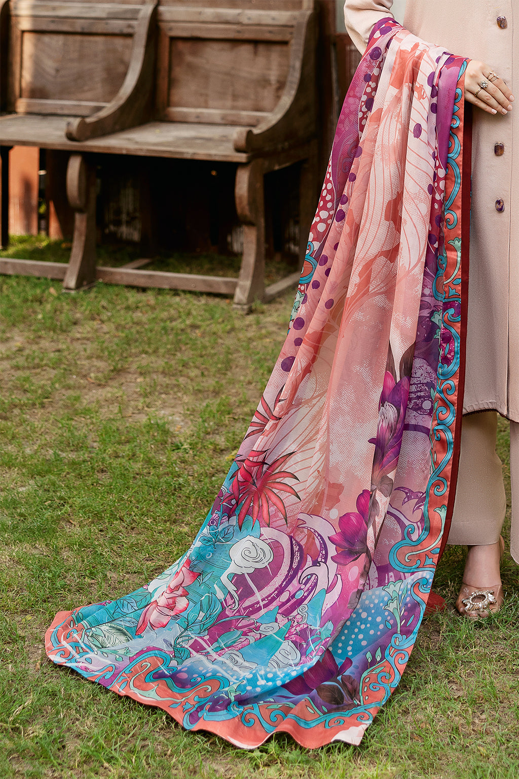 Printed silk dupatta is sold separately.