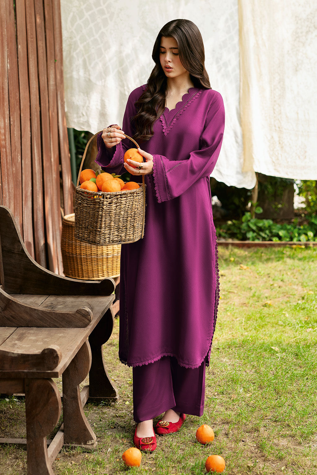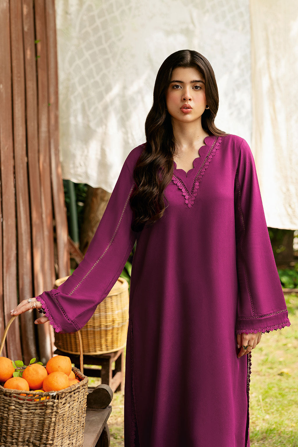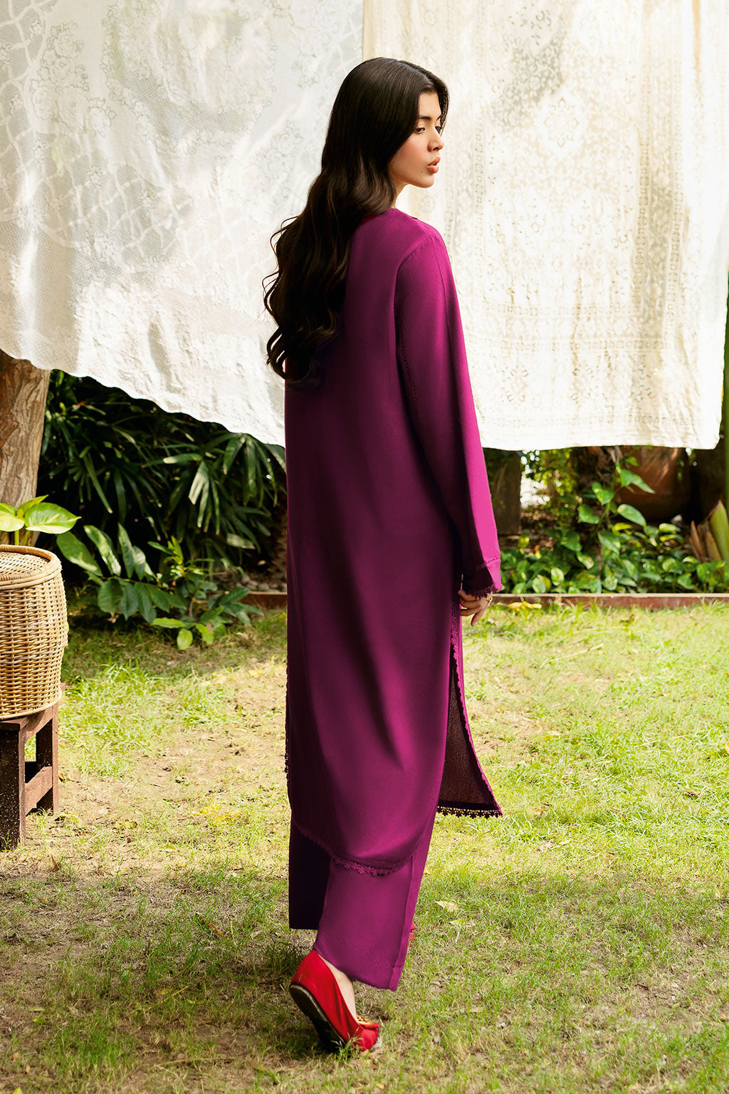 Shocking pink includes solid shirt pants with the V neckline embossed scalp with lace - Pure premium karandi with a subtle sheen produced in - house!