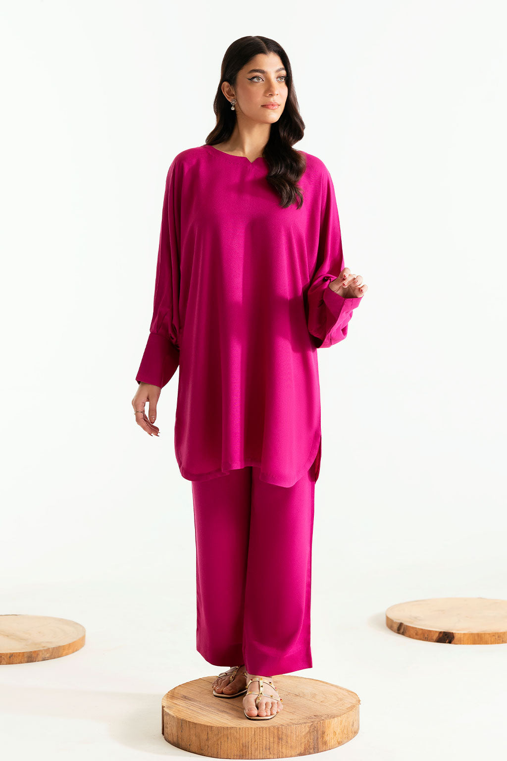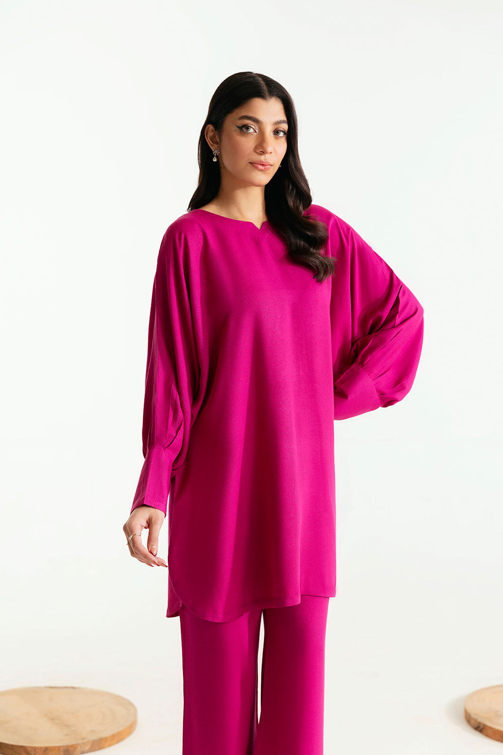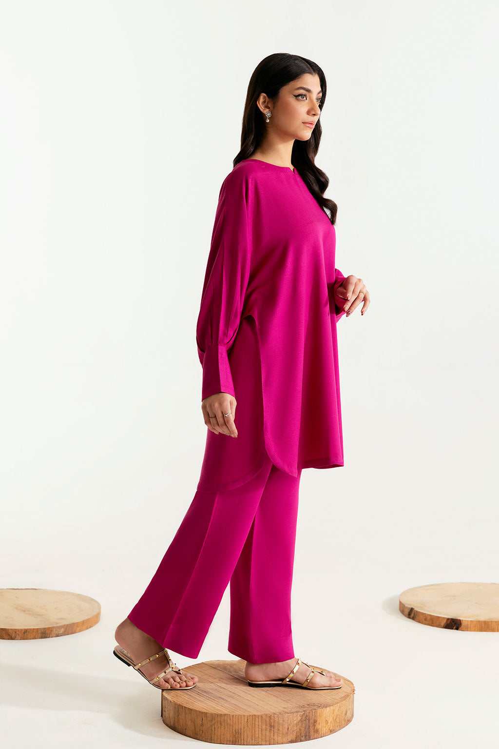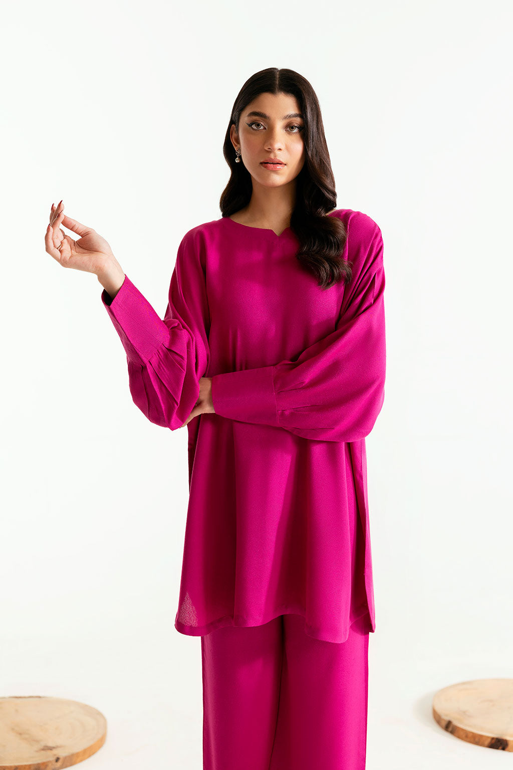 A chic winter essential in premium Karandi, this deep pink 2-piece boasts a round neckline shirt with sleeve detailing and loose-fit trousers — perfect for cozy elegance.