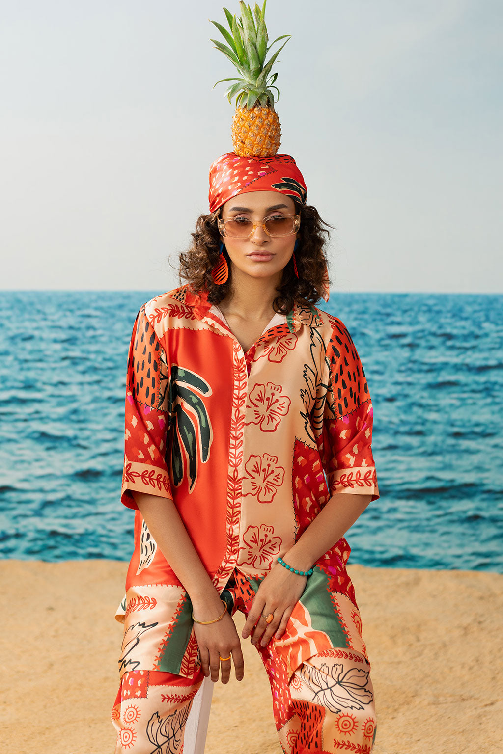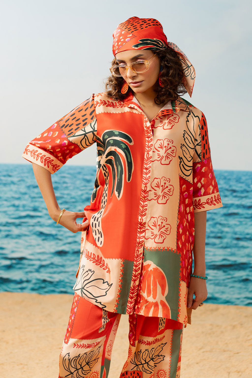 Digital printed set Includes a shirt and straight pants Crease Silk fabric produced in-house