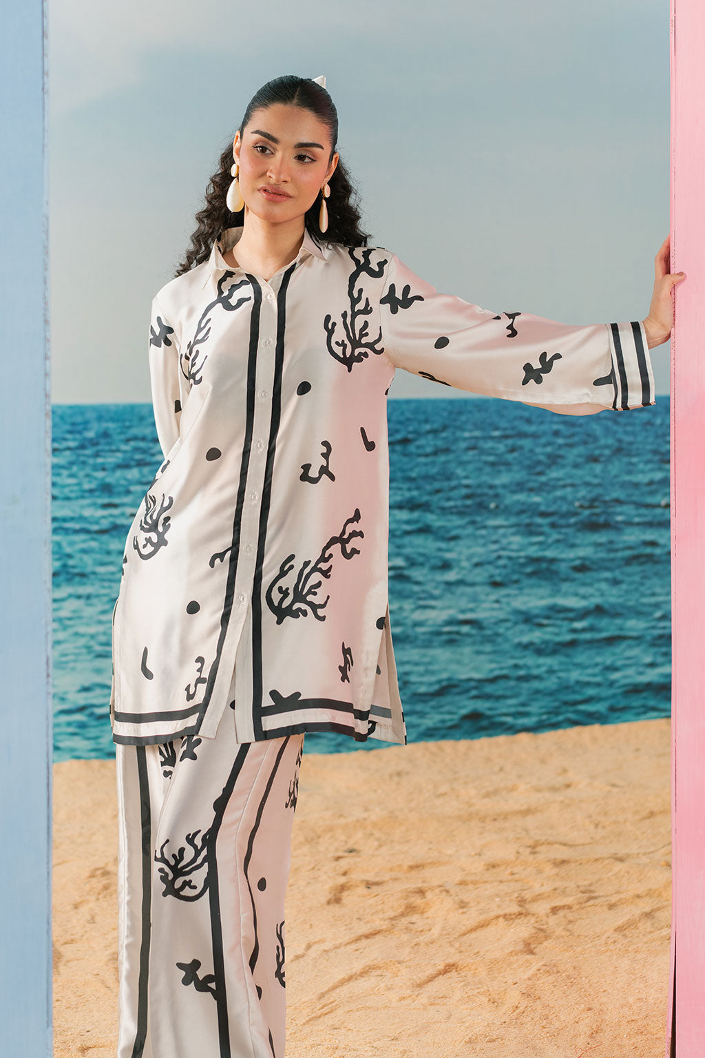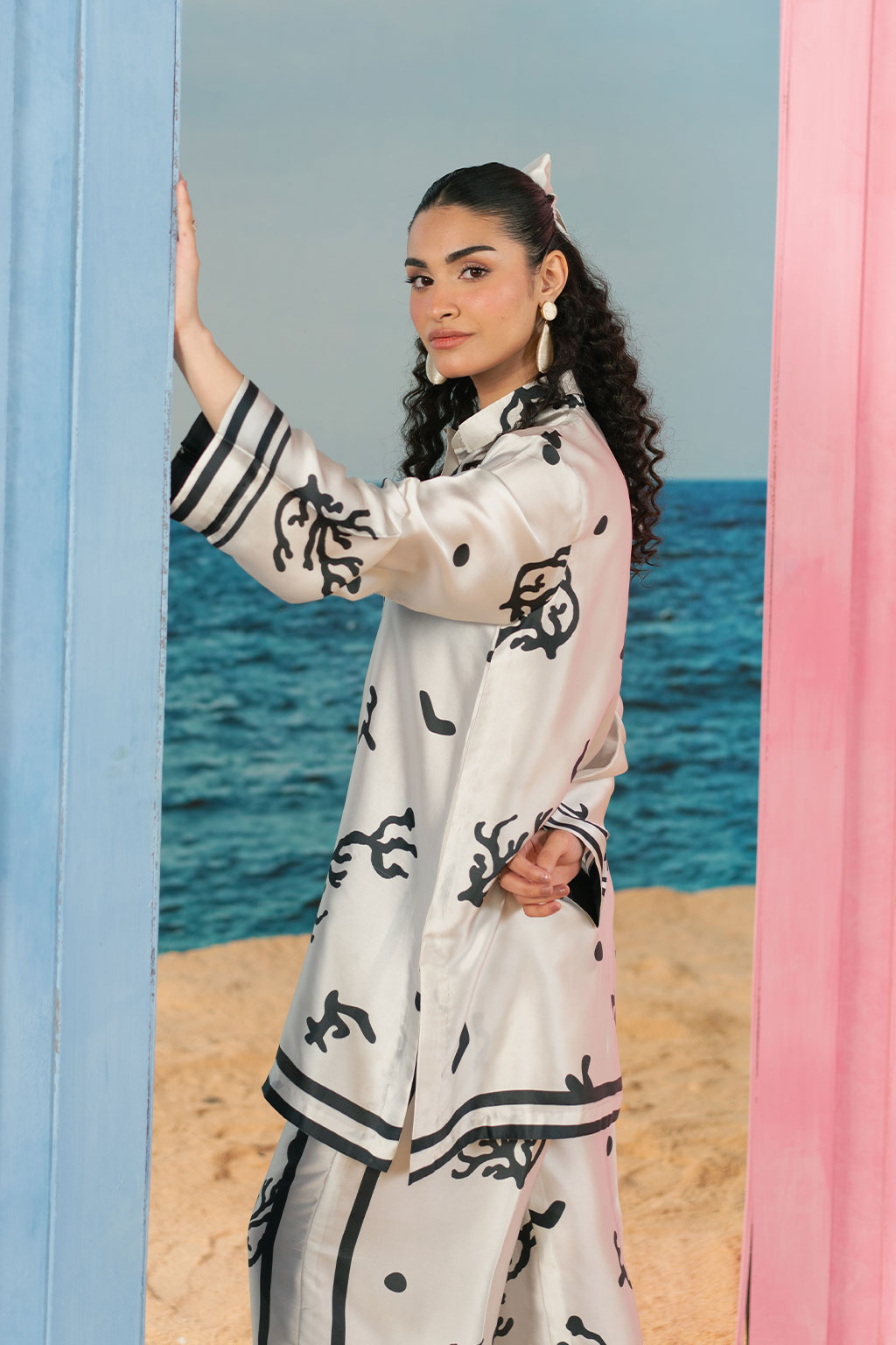 Digital printed set Includes a shirt and straight pants Crease Silk fabric produced in-house