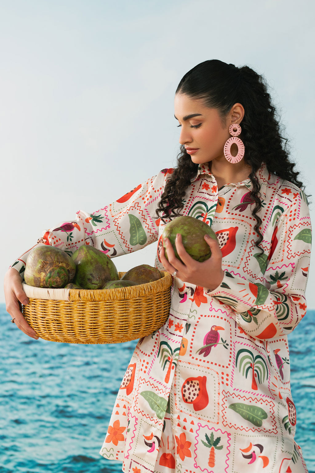 Digital printed set Includes a shirt and straight pants Crease Silk fabric produced in-house