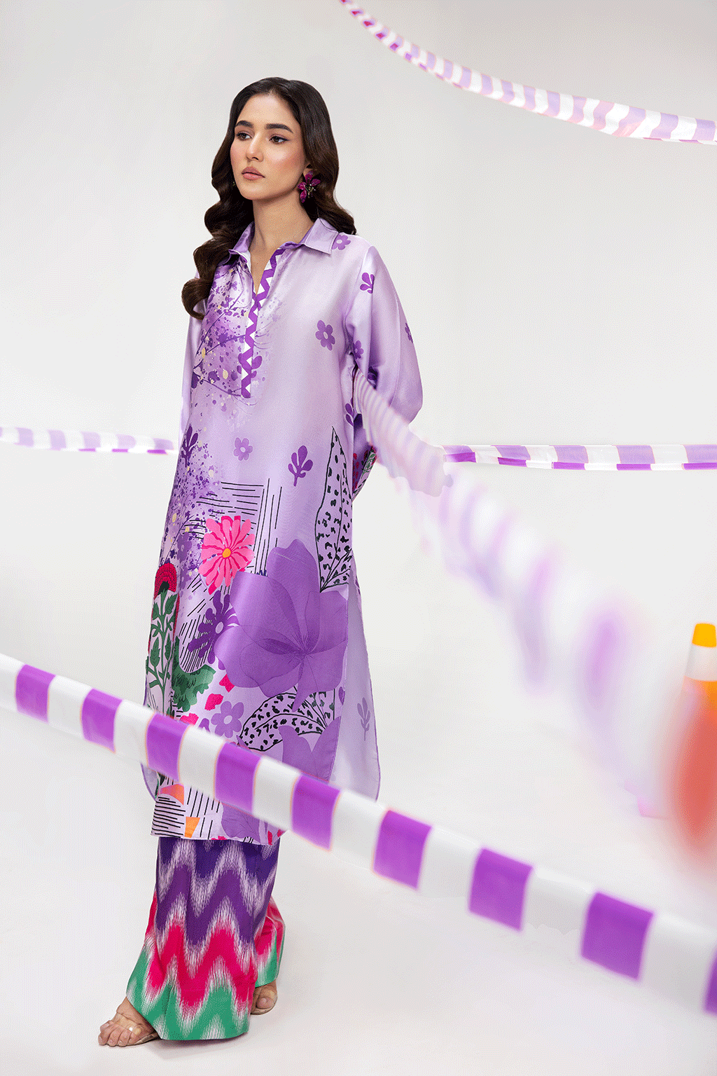 Digital printed set Includes a shirt and straight pants Crease Silk fabric produced in-house Suitable for summers.