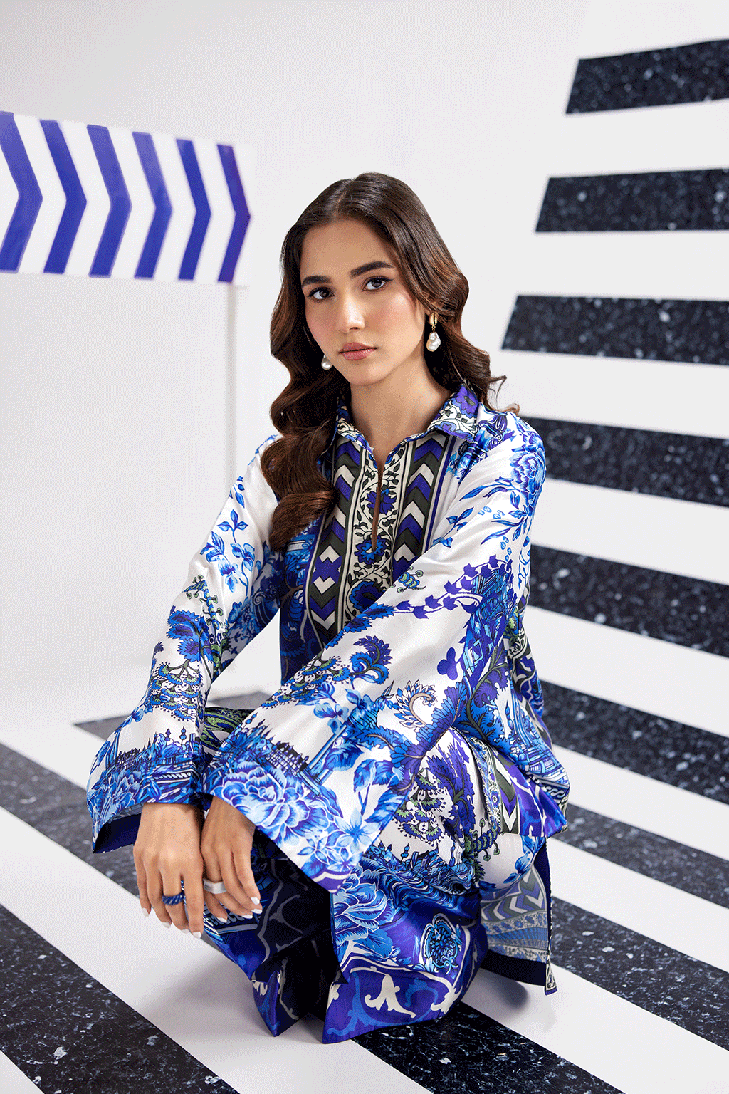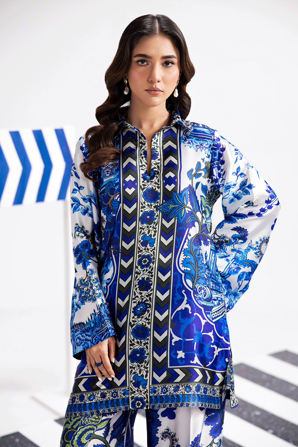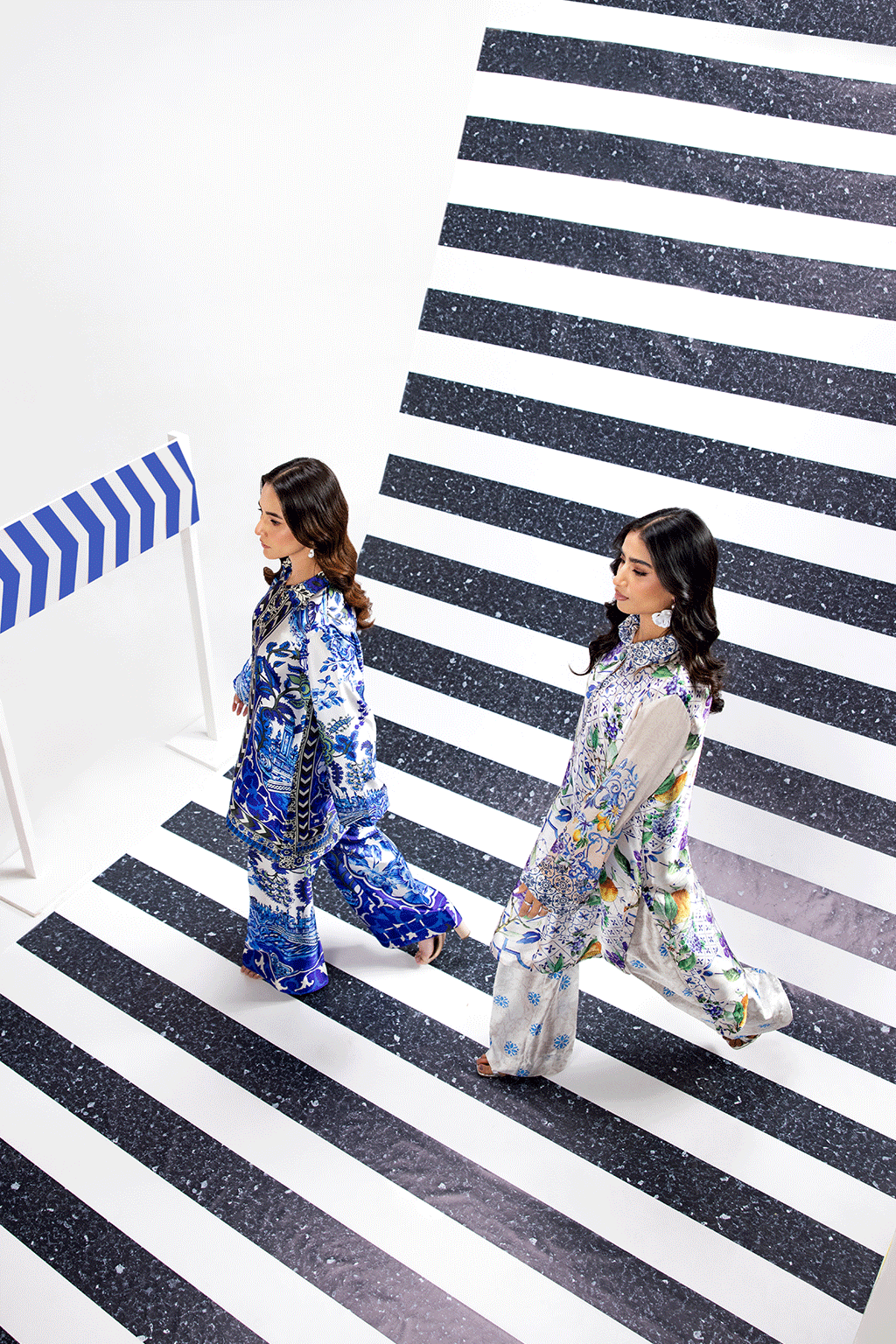 Digital printed set Includes a shirt and straight pants Crease Silk fabric produced in-house Suitable for summers.
