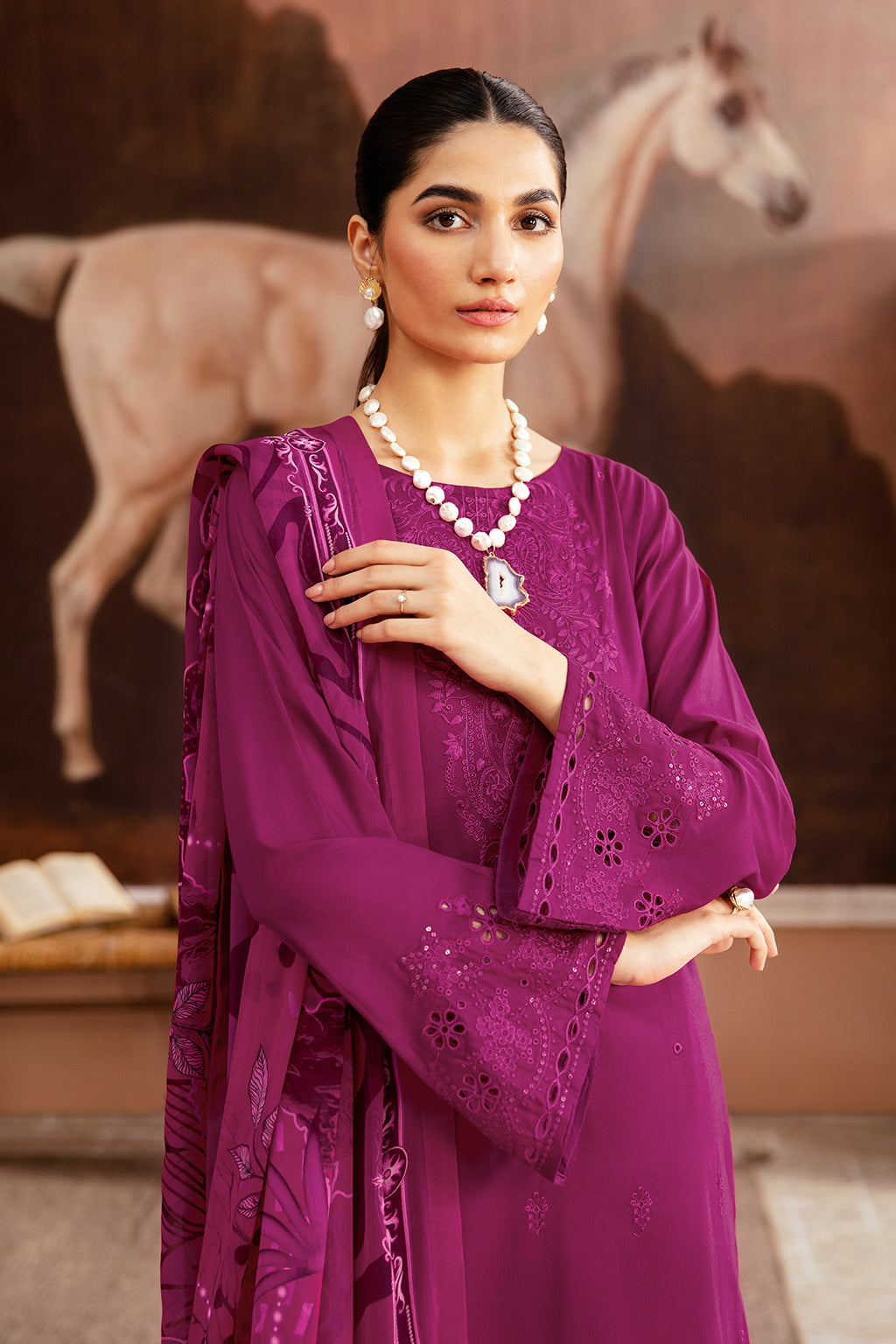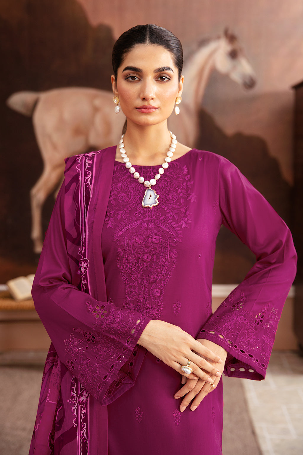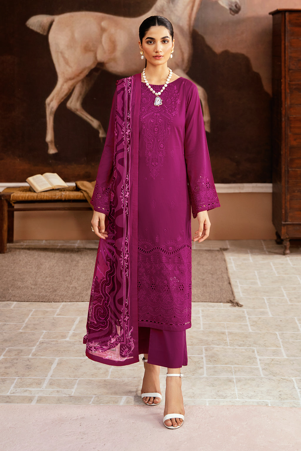 Embroidered lawn front